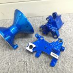 ダートバイクプラス限定のCRF用ブルーハブを使ってます!基本カラーはレッド・ブラックですがごく少量のみブルーが入荷です!