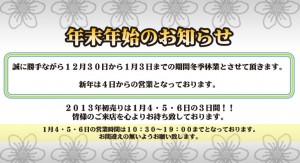 上記の通り、12月30日から1月3日までお正月休みを頂きます。 皆さん買い逃しのないよう、焦ってくださいね。 そして、新年4日から6日までは新年初売りセールを開催します。 初売りの内容は色々ですが、目玉はなんと言ってもこれでしょう↓
