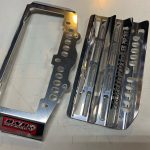 純正のプラスチックのネットみたいなガードから一気に頑丈、かつカッコ良くなります。