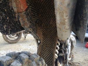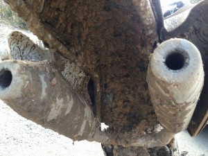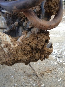 ご覧の通り、こんもりと泥が積もっています。エンジン下にも結構載ってますね!