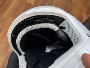 頬のホールド感は好き嫌いが分かれるかもしれませんが、リペア内装で薄くすることができます。(Mサイズはチークパッドが一番薄いのでできません)