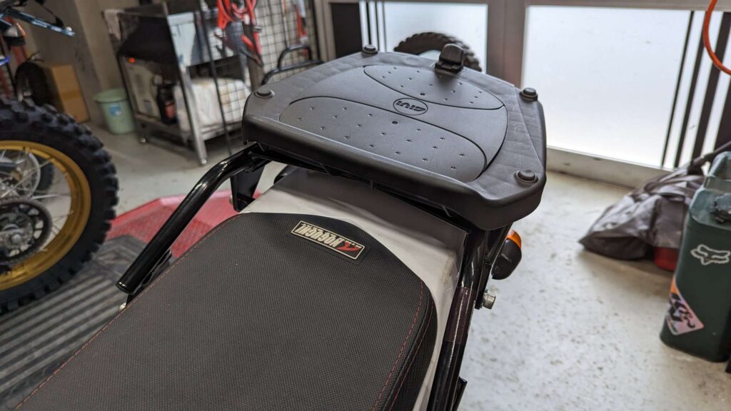アルミキャリア故に、トップケースのような箱の装着は振動で割れてしまう可能性があります。