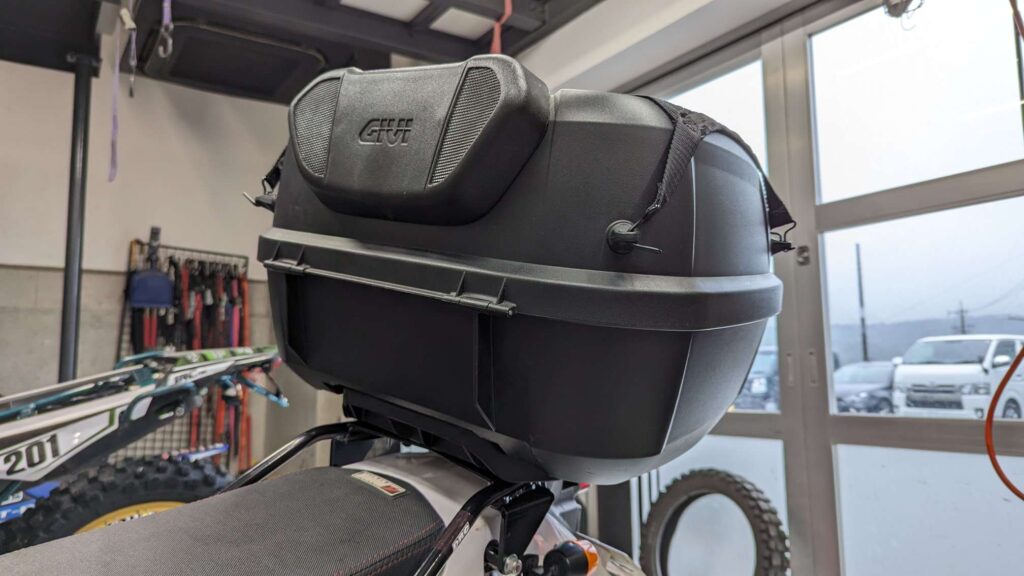 アドベンチャーキャリアの付いたセローにGIVIのトップケース取り付け依頼を頂きました。