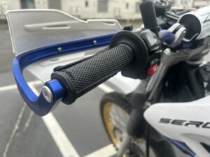 ハンドガードマウントを付けて転倒時のハンドガードの回転を抑止し、トラブルを軽減します。
