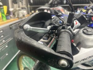 転倒時にヤマハ純正ハンドガードとレバーを曲げられてしまったようで