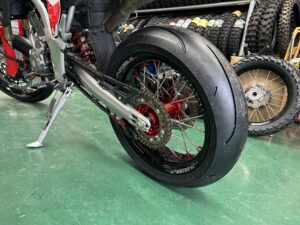 注意点としてはモタードホイール装着時に純正と同じように40丁を採用すると