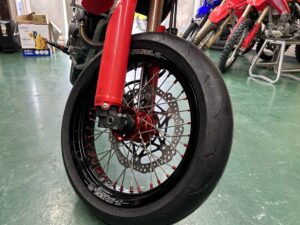 こちらのお客様は基本モタード仕様。たまに林道にも行きたいということで