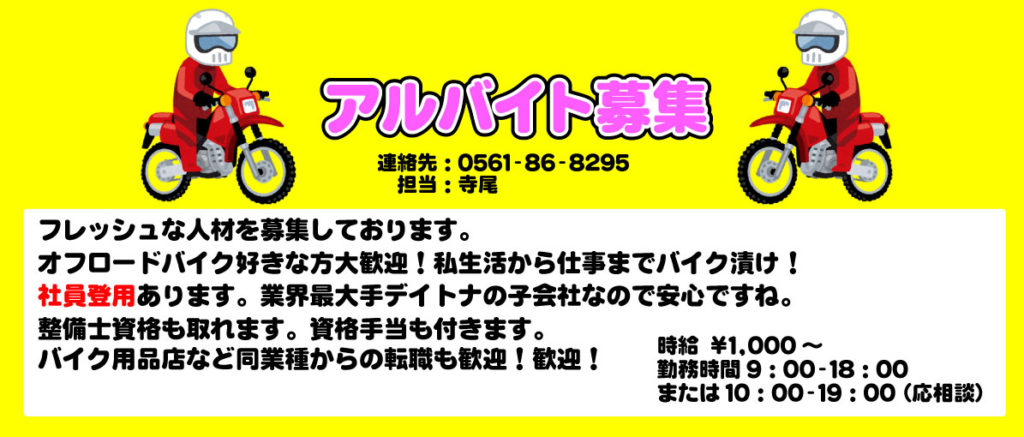 フレッシュなオフロードバイク好きな方、大歓迎です。