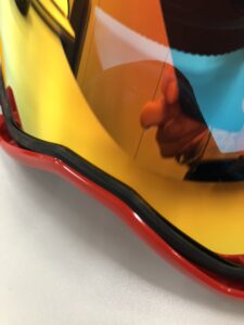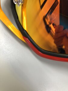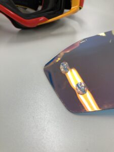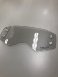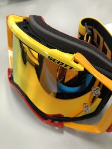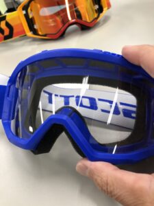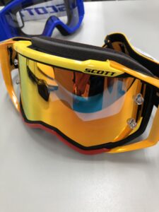 ちなみにスコットのミラーレンズはアンチフォグ(曇り防止)で表面は水をはじく仕様となっておりますので、曇り止めや撥水コートはしないでください。そして素材はポリカーボネートでできており、踏んでも曲げても絶対に割れることはありませんが、揮発性のある溶剤を付けてしまうと割れることがありますのでお気を付けください。