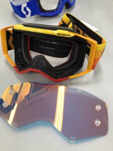こちらのゴーグルはスコットの上級グレードのプロスペクトと初級グレードのプライマルというモデルです。こちらのプロスペクトにはミラーレンズが初めからついています。(モデルによってはボーナスレンズという名前でクリアーレンズが付属でついています)