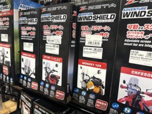 ハンドガードやウインドスクリーンなど車種専用設計があるので