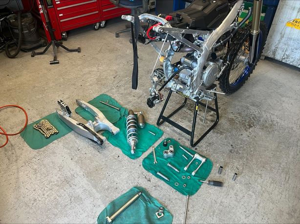 個人的にはスイングアーム周りが面倒なので先にバラしていきます。