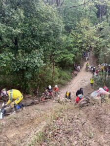 1周目から普段うまく上がれる裏山のエンデューロコースの坂で捕まって大変でした。