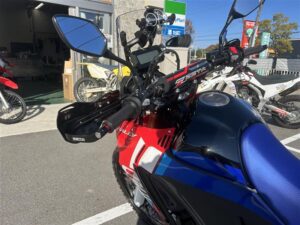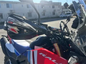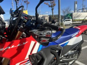 ハンドガードもCRF250L/RALLY専用のアドベンチャーハンドガードでブレーキホースやクラッチワイヤーの干渉を避け、