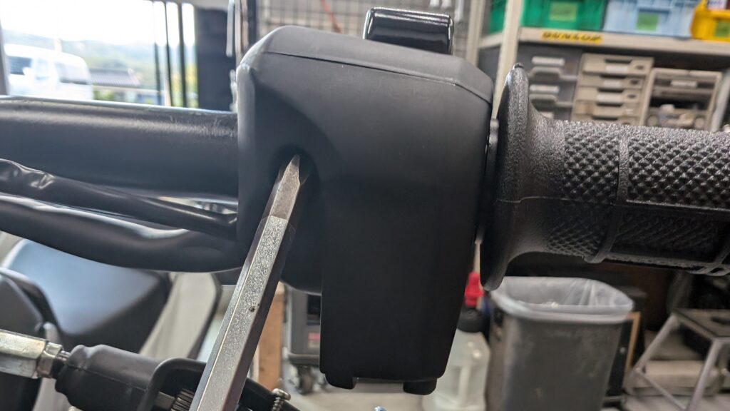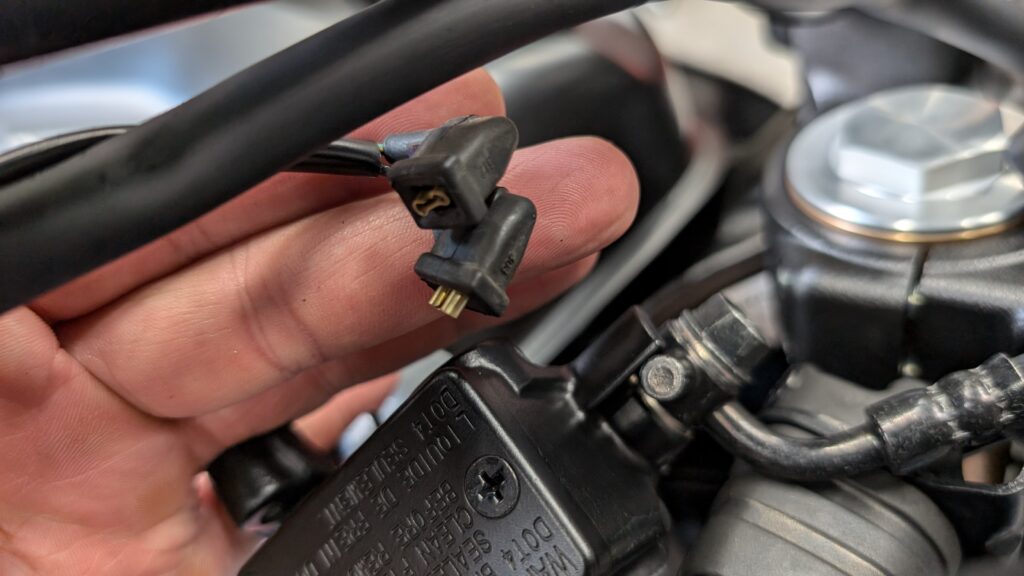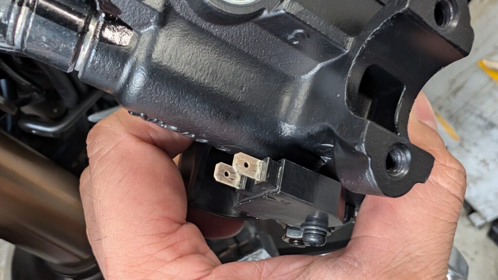 こちらもブレーキスイッチの配線がマスターシリンダー底面に付いているので抜いていきます。