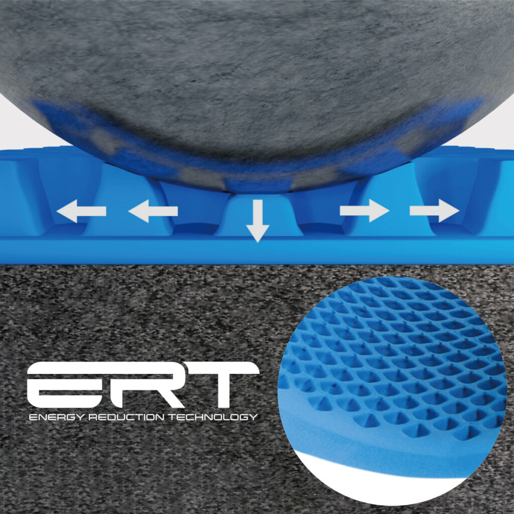 ERTマットは衝撃を吸収といなす両面の機能を持っています。