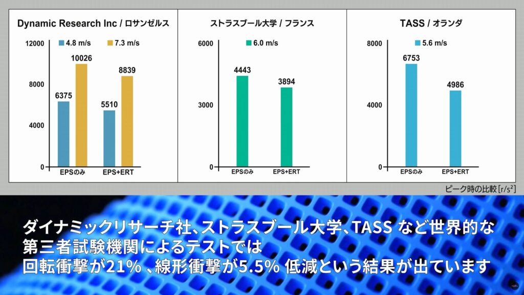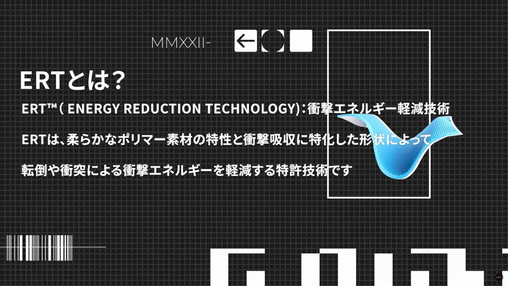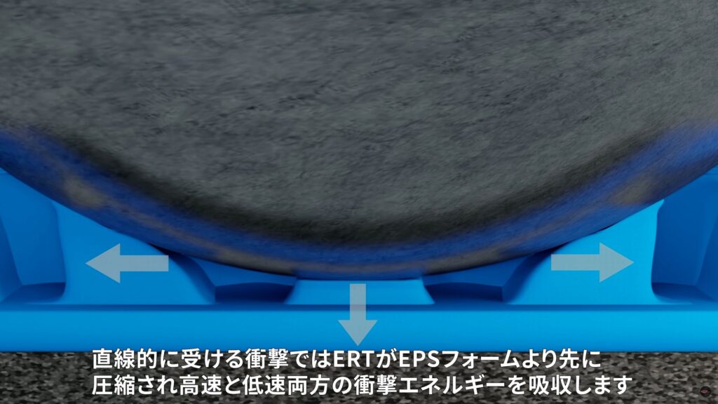こちらは通常の発泡スチロール製ライナーに加え、ERTという衝撃を逃がすための技術を使ったギミックを備えています。