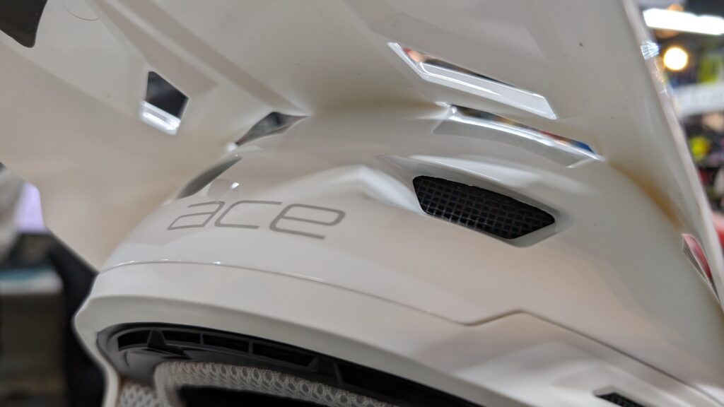 今回のACEヘルメットは純オフロードヘルメットとして設計されているのでシールドの類は付いていません。