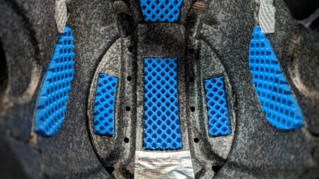 ACEヘルメットではそれに加え、弱い衝撃を逃がすためのERTという特殊素材のマットを仕込みました。
