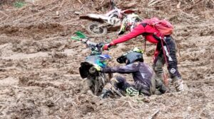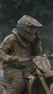 雨天時のマディコンディションにおいて、降り続く雨や前走車が跳ね上げた泥をバイザーを拡大延長することによって、ゴーグルに泥が付着するのを防ぐアイテムです!