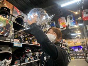 さてこちら、ARAIヘルメットのVX4を実際にレースで使用する玄人代表!?ダープラライダー井川みのり選手にも「ほしい」と言わしめたバイザーマッドガードっていったいなぁに?