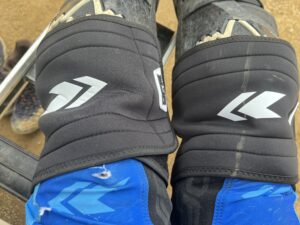 このように巻いて使います。レースだけではなく、普段の林道ツーリングでも活躍してくれるアイテムですね。