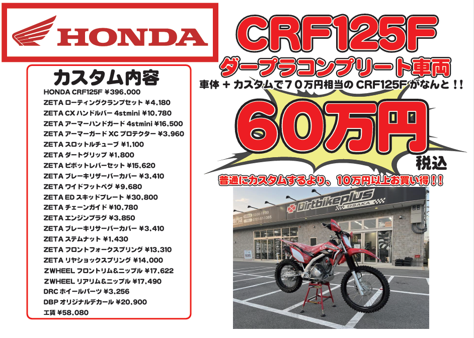 ダープラ大阪にて、CRF125Fコンプリート車両を発売開始します!