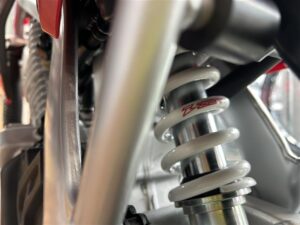 フロントのスプリングはフォークトップキャップを取り外してスプリングを交換します。