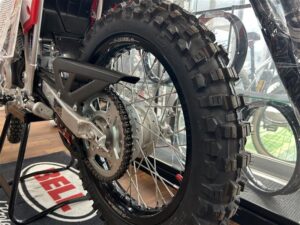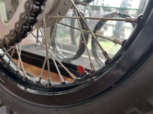 純正は鉄リムが付いています。オフロード走行するには強度が少し弱いので