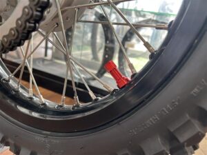 今回のダープラ号は色んな部分にアルマイトパーツを付けて豪華感を出すためにリムロックやエアバルブキャップの部分も変更しています。