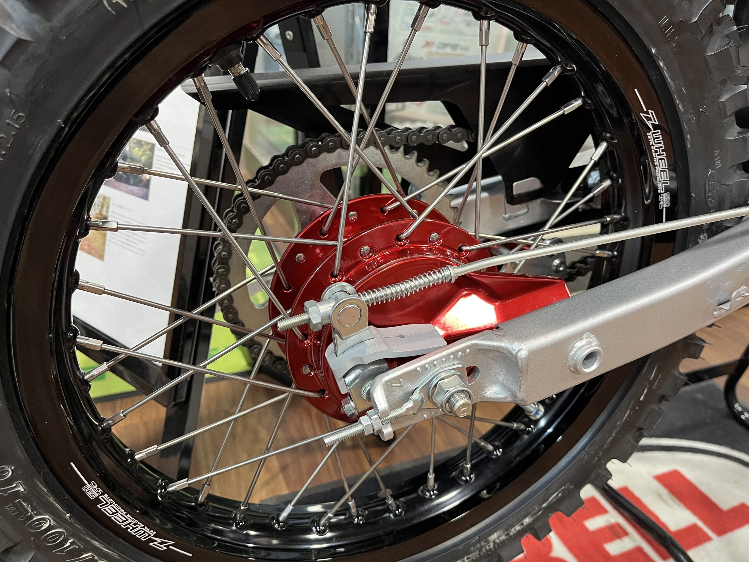今回の目玉は、キャンディーレッドに塗装されたハブとZ WHEELのアルミリム!