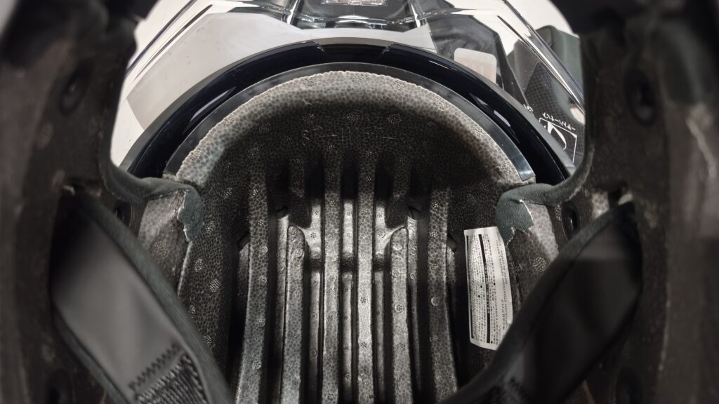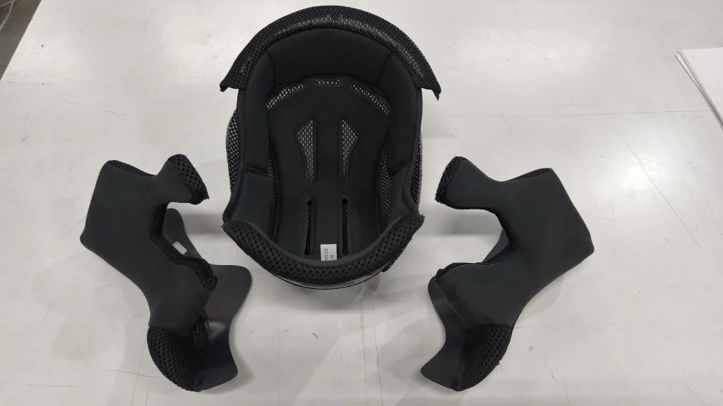 内装はストラップカバーを除いたセンターパッドとチークパッドが着脱可能。