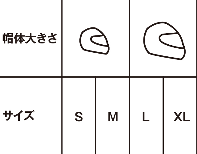 このヘルメットは2サイズの帽体と内装の厚み違いで4サイズを用意しており、
