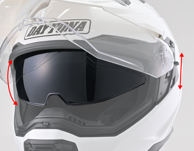 ツーリング派に嬉しいインナーバイザーを装備。シールド横のスライドスイッチを操作することで