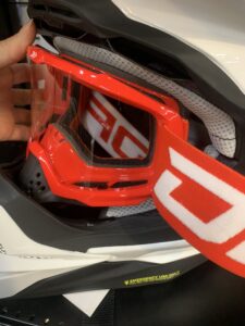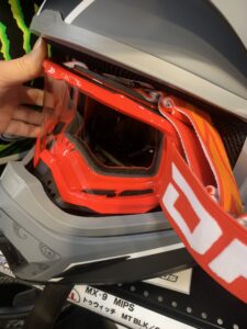 ティアオフというのはゴーグルレンズの上に設置できる捨てレンズのようなものでして、泥等が付着し視界が遮られる状況にぺろっと剥がせば視界が復活する優れものです。