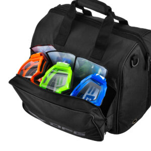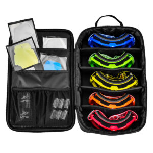 ゴーグルを最大5個収納できて、レンズ ティアオフなども保管できるポケットもついています。
