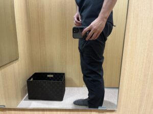 一般的な硬質プロテクターは、大きいのでズボンの中に装着すると、ズボンがパツパツになり膝を曲げにくくなってしまいます。