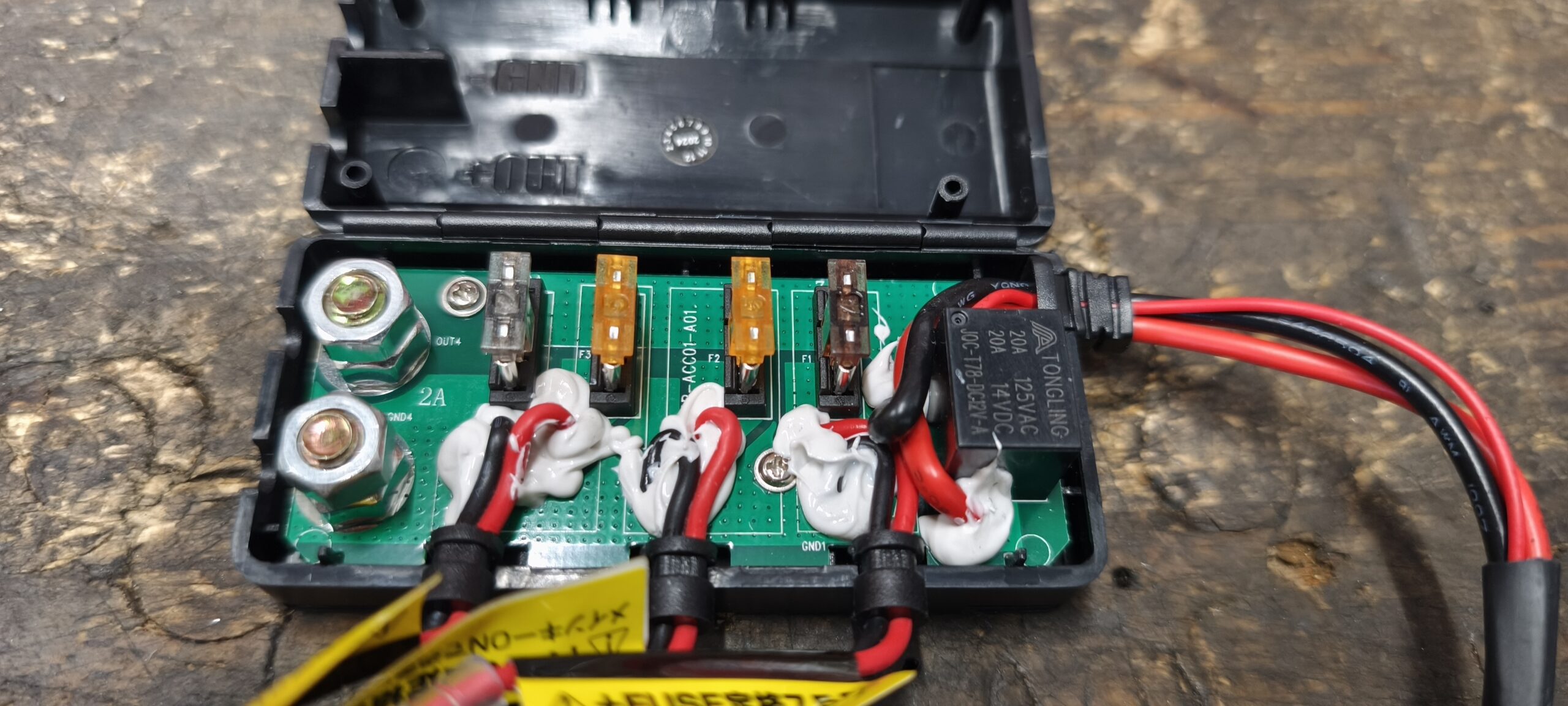 これはバッテリーから給電され、四か所に電源を配分するというもの。