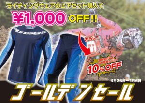 ダートバイクプラスではゴールデンウィーク期間中大SALE開催!!