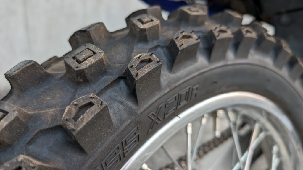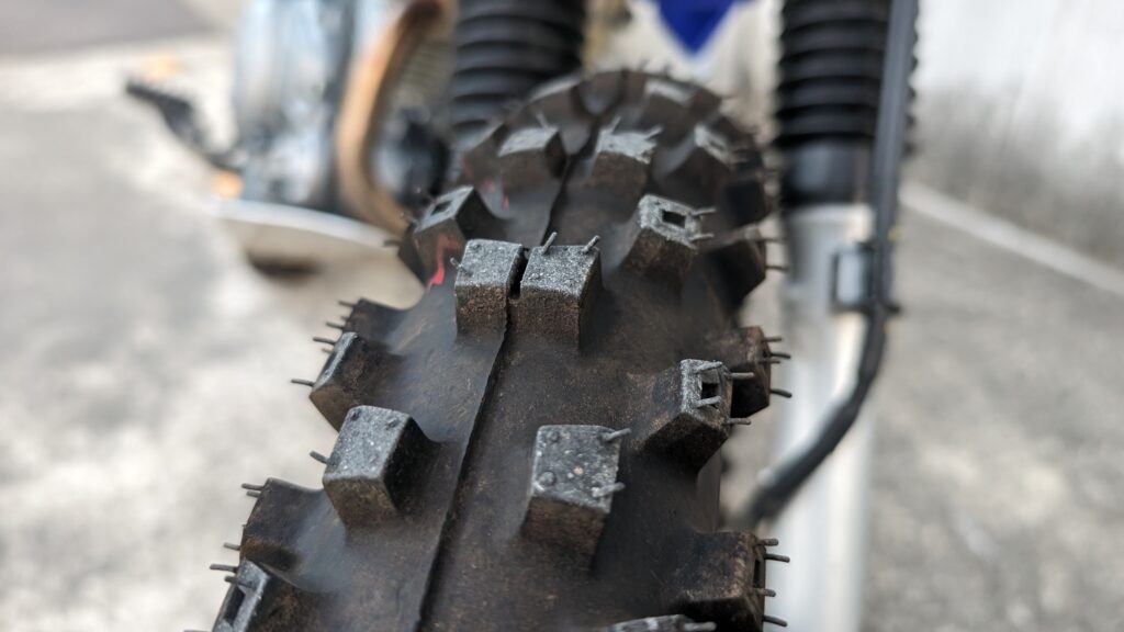現地の状況を見るとモトクロスタイヤで間違いなしと判断。