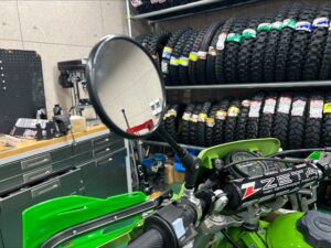 林道に行った際にミラーを折りたたむことにより転倒時の損傷を防ぎます。