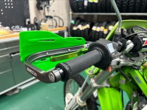 入庫時は純正ハンドルにオープンハンドガードが付いていました。