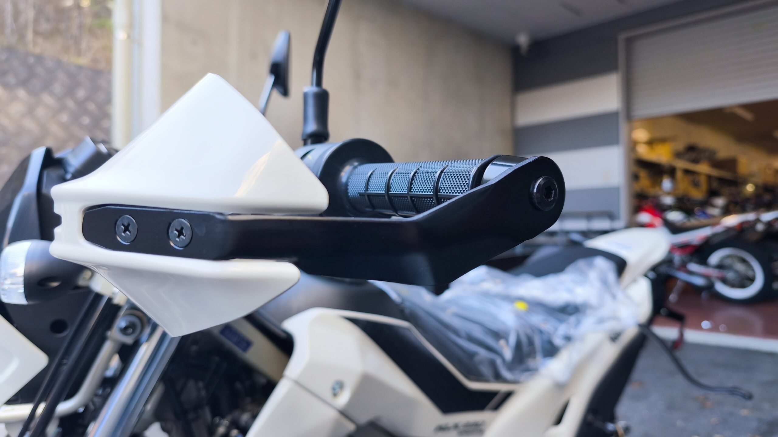 ちょっとヘッドライトとのクリアランスが狭くて持ち辛いので、もう少し長くしてくれるとウレシイですね。