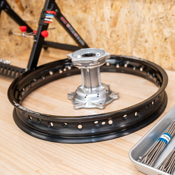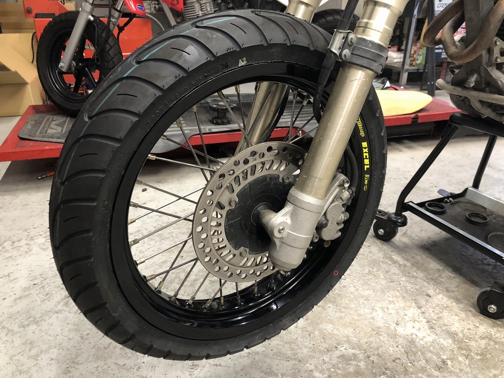 まず最初は純正のオフロードホイールを分解し、EXCELリムで用意したモタードリムに