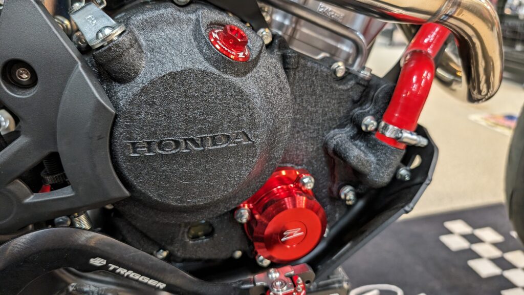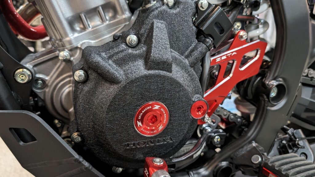 エンジン周りも見てみましょう。独特の質感なクランクケースカバーが目立ちますが、これもDF-CRAFTによる