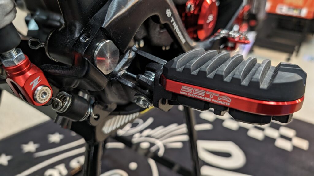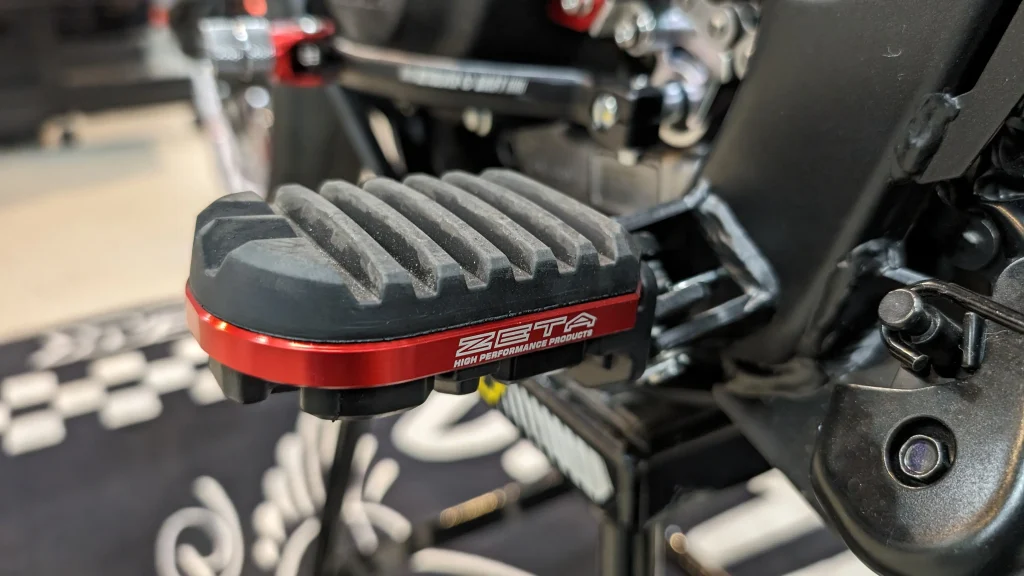 今までありそうで無かった、ゴムの座面が取り付けられるフットペグです。