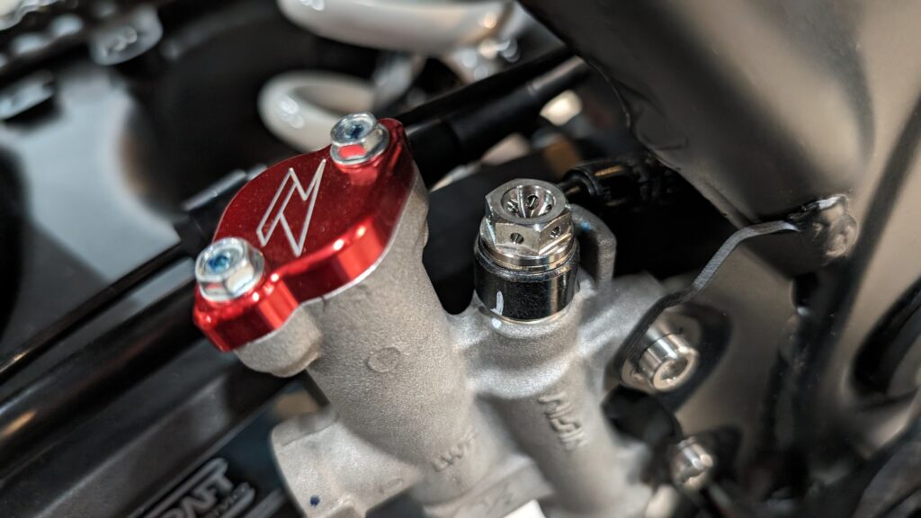 そしてこれもさり気ないところではあるのですが、ボルトがちょこちょこチタンボルトに変わってます。