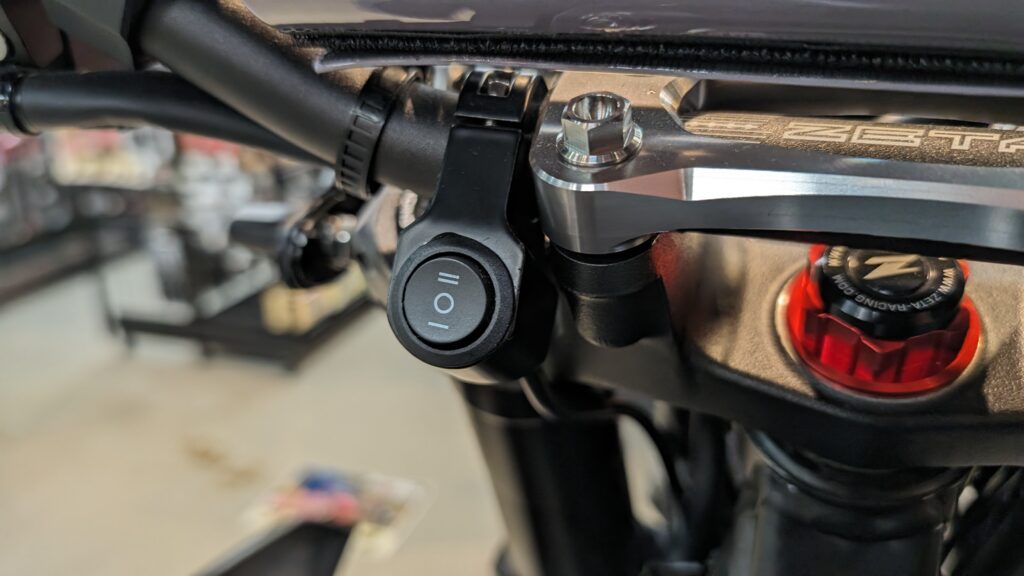 ハンドルに装着されたスイッチでON/OFFと発光色の切り替えが可能です。