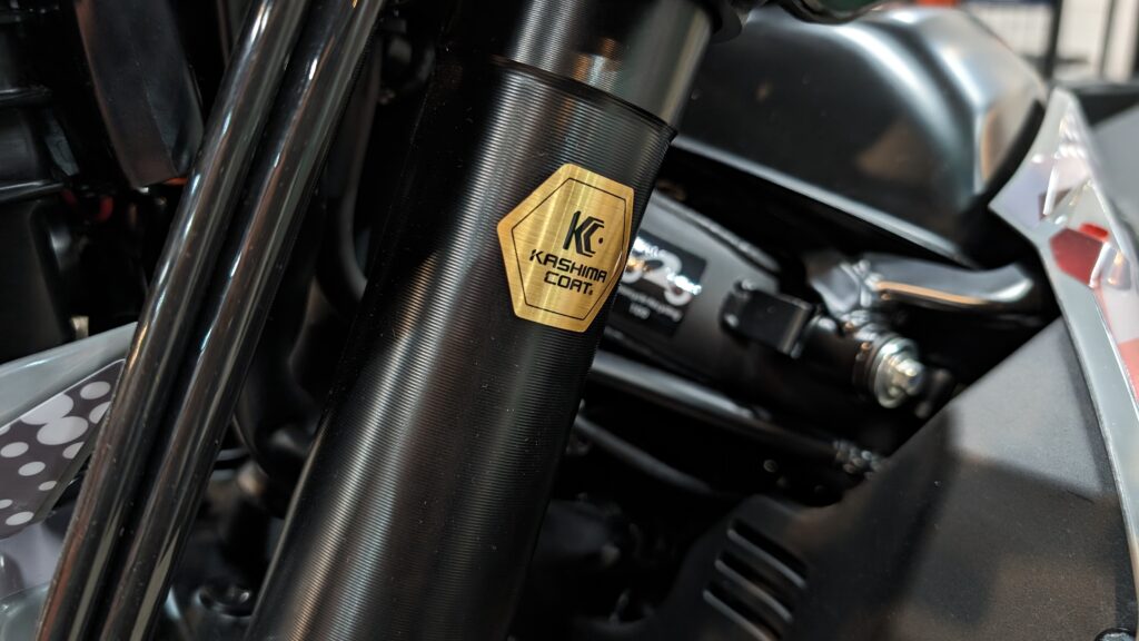 まずはフロントフォークですが、カシマコート処理がされています。