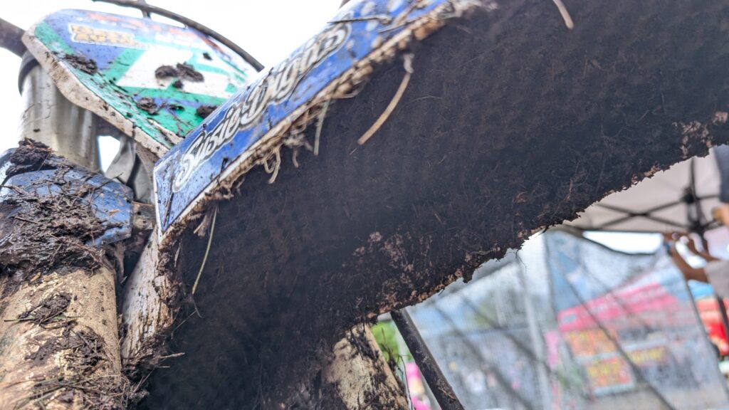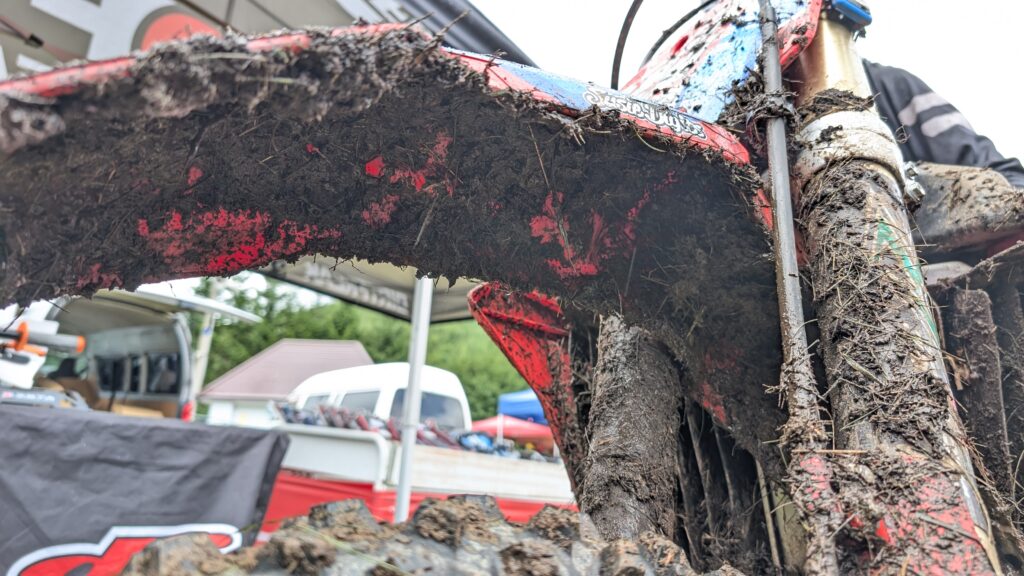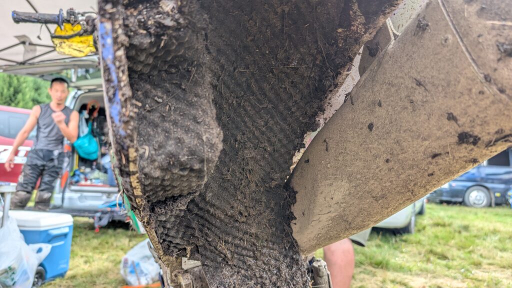 これを貼り付けることで泥でバイクが重くなるのを軽減してくれる効果があります。